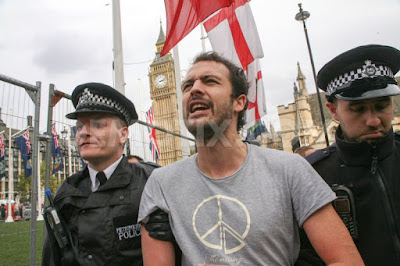 I was arrested and charged with, "obstruction" for throwing a tub of hot food into the hands of Danny "Plinthguy" Freeman. By the time I had arrived at the protest on October 22nd, Danny had apparently had enough of the aggressive police tactics that he had been witnessing - and was 26 hours into a peaceful standoff atop the Winston Churchill statue. For health and safety reasons, the authorities were unable to forcibly remove Danny from his post. Due to his own health and safety concerns, Danny had refused to come down whilst police officers were still present.
