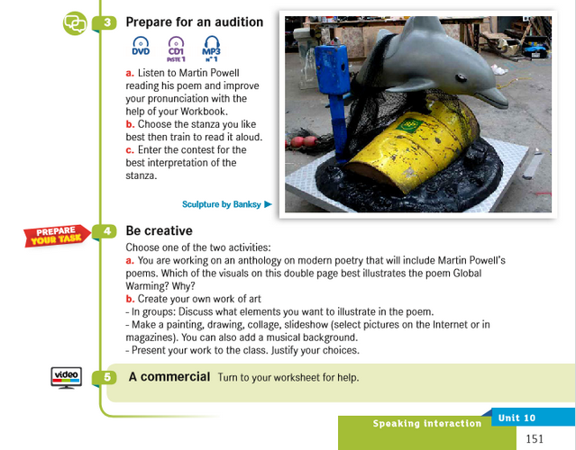 A. Listen to Martin Powell reading his poem and improve your pronunciation with the help of your workbook.